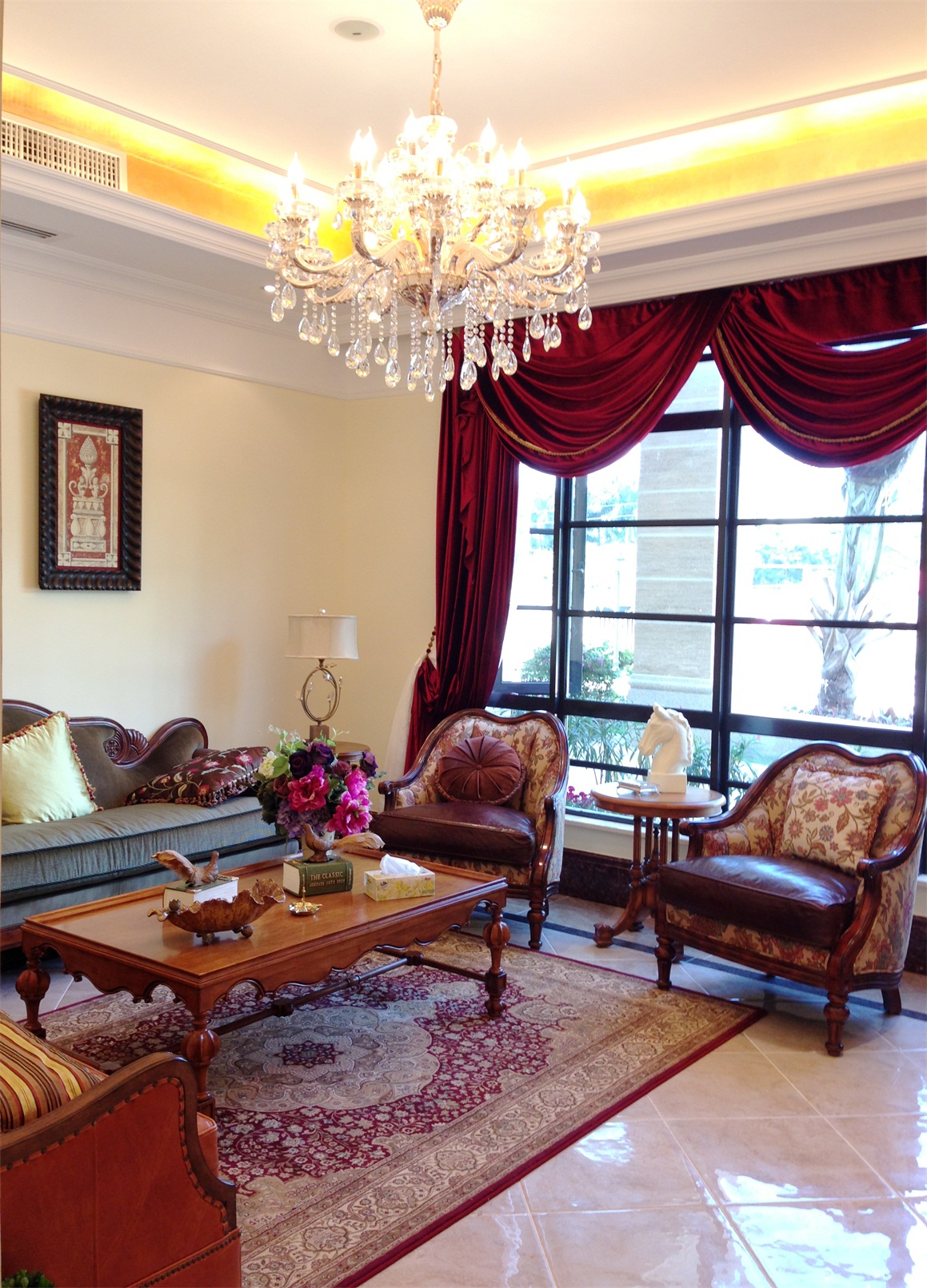 仿古磚、鐵藝、水曲柳面板、石材