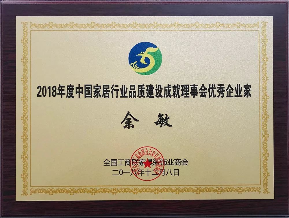 會上,全國工商聯(lián)家具裝飾業(yè)商會舉行隆重授牌儀式,廣東星藝裝飾集團當選2018年度中國家居行業(yè)品質(zhì)建設(shè)成就理事會理事長單位。另外,余敏董事長榮獲2018年度中國家居行業(yè)品質(zhì)建設(shè)成就理事會“優(yōu)秀企業(yè)家”榮譽稱號。